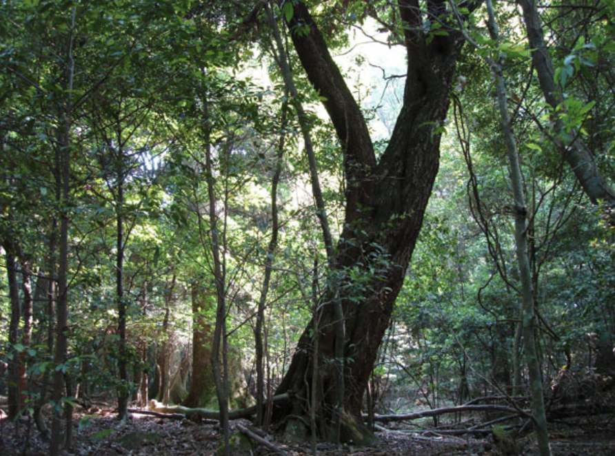 市街地のすぐ近くに原生林が