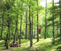 白い樹皮と新緑映える白樺林。
